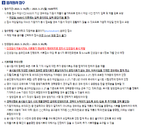 서울대학교 채용 정보, 자소서 문항 분석, 자기소개서 합격 후기